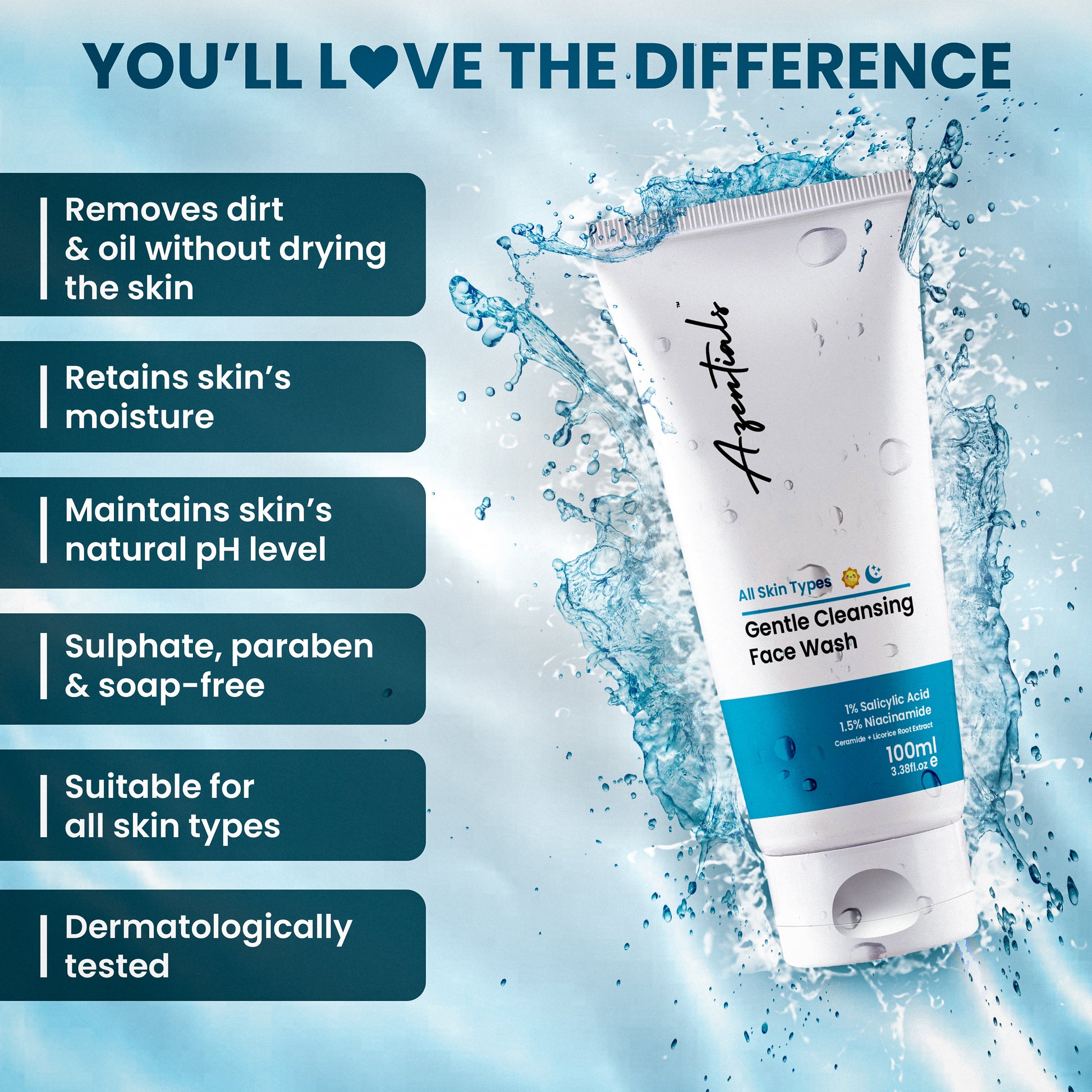 Give your skin the care it deserves with Azentials Gentle Cleansing Facewash – a powerful yet soothing formula designed to deeply cleanse, unclog pores, and restore skin balance without stripping natural moisture. Specially crafted for sensitive, oily, and acne-prone skin.